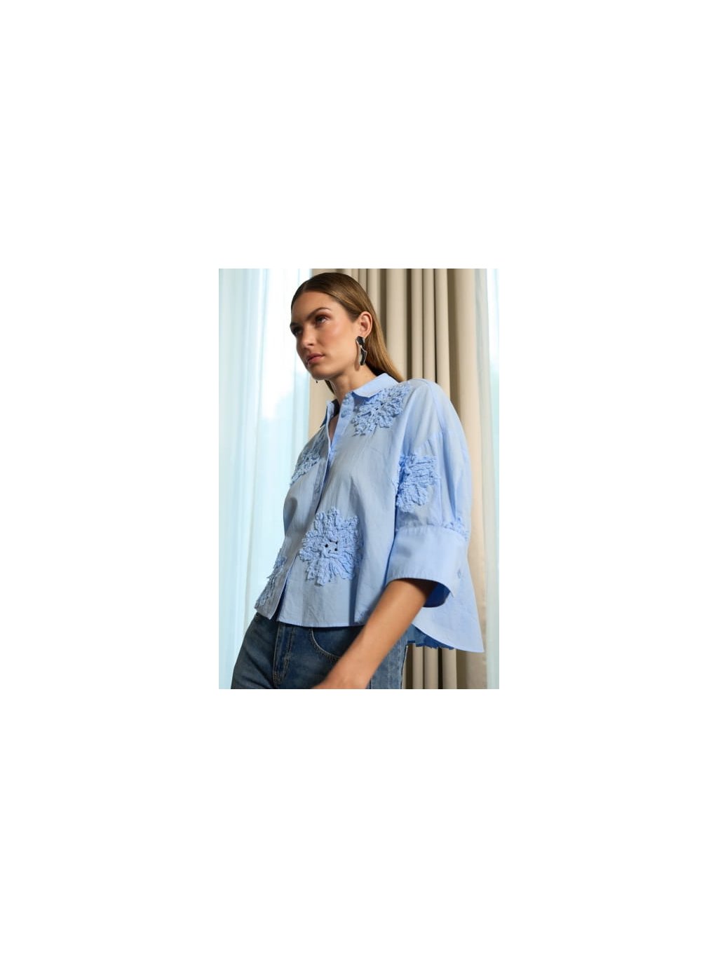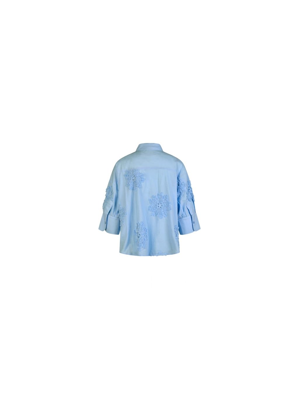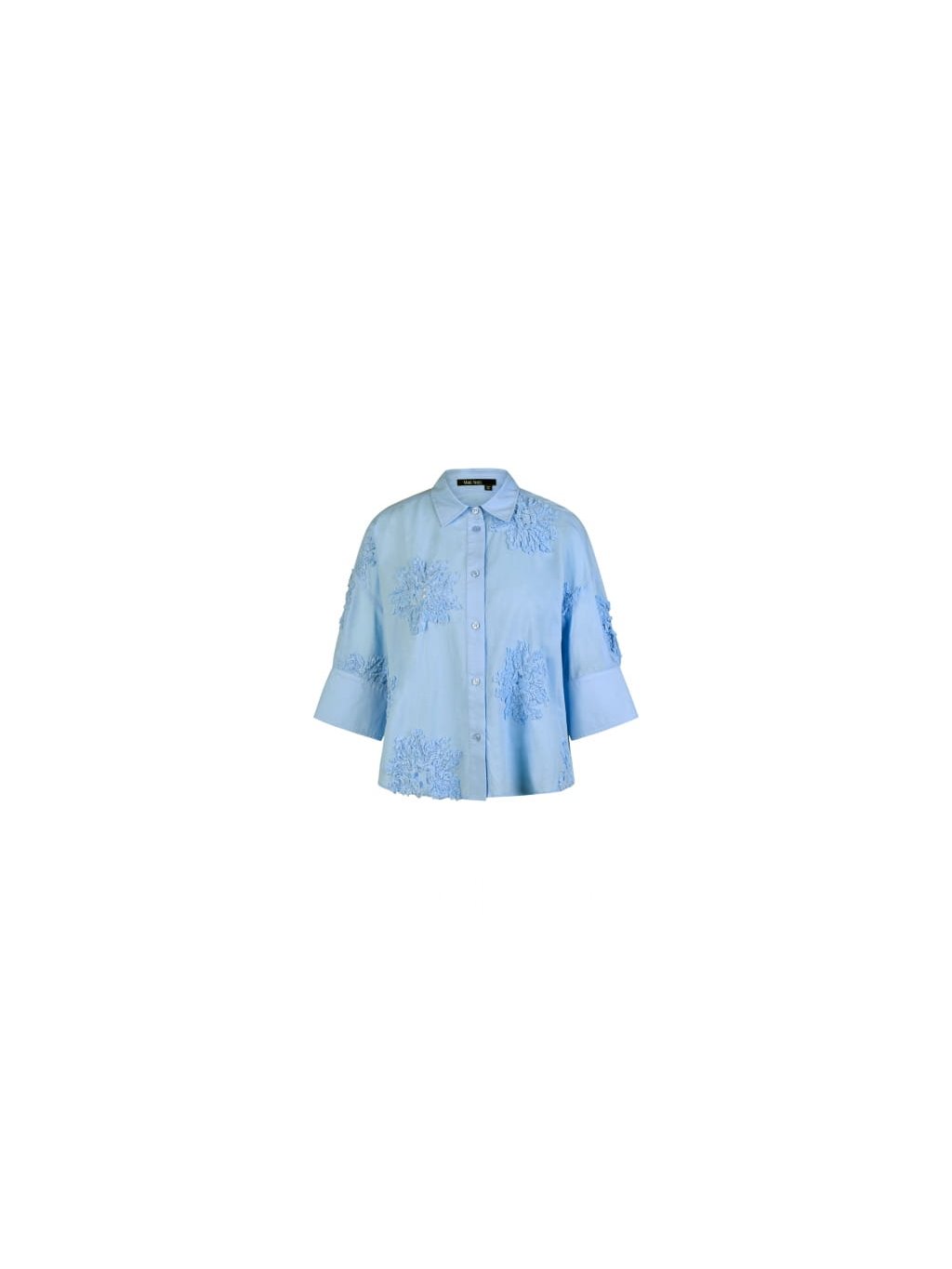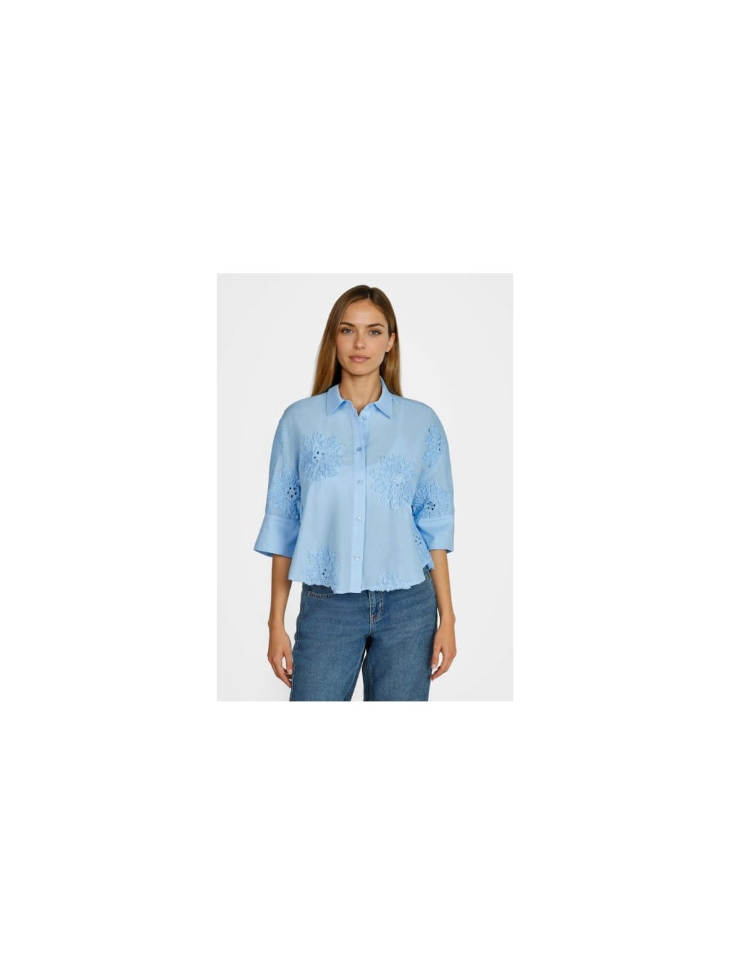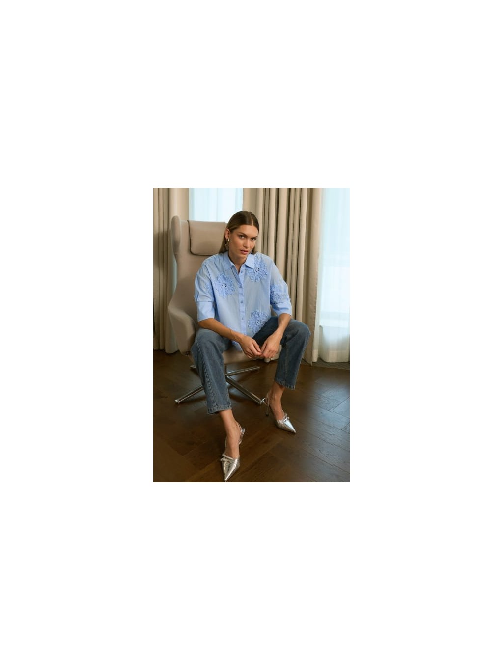 Tato halenka kombinuje klasický košilový vzhled s decentní květinovou výšivkou v tónovaných barvách na lehkém bavlněném popelínu. Košilový límec dodává strukturu, zatímco rozparky na manžetách a boční rozparky poskytují extra pohodlí. Ideální pro ležérní a zároveň moderní vzhled