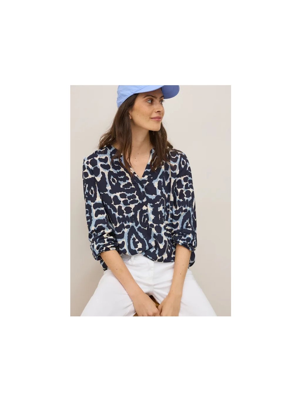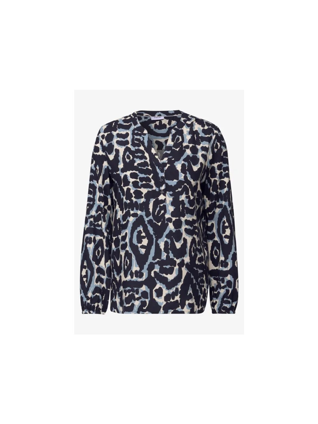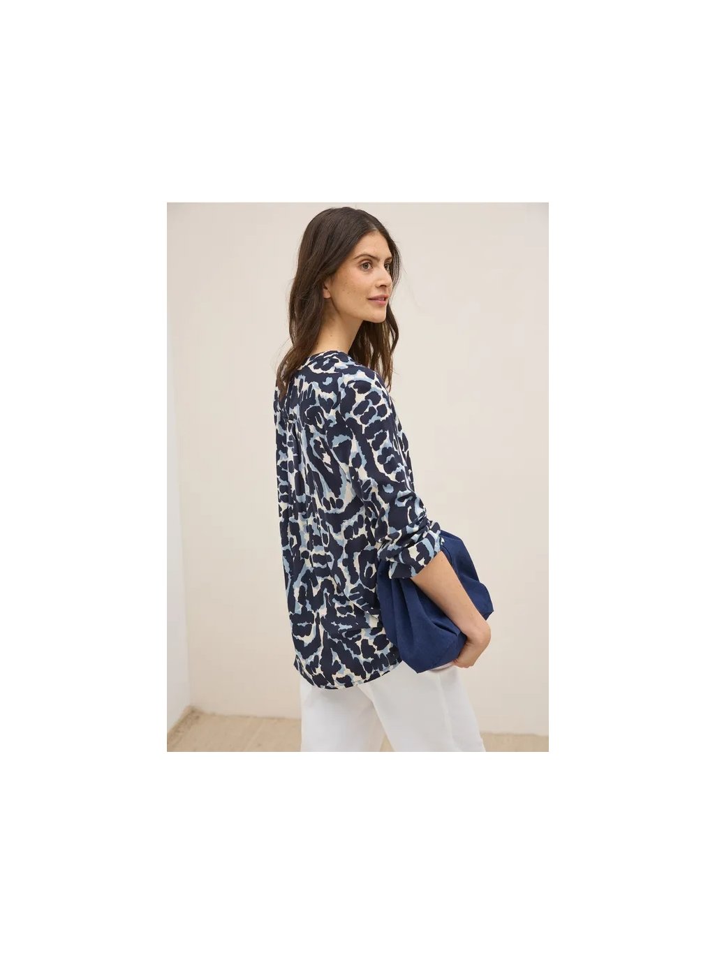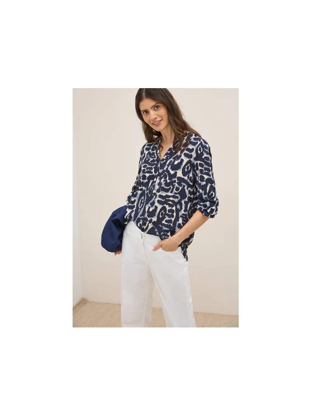 Tato vzorovaná tunika od značky CECIL pro ženy dodává módní akcenty grafickým potiskem. Měkká viskóza se snoubí s ležérními detaily, jako je rozdělený výstřih s ozdobným zapínáním na knoflíky a elastické manžety. Ideální pro pohodlné outfity s letním nádechem.