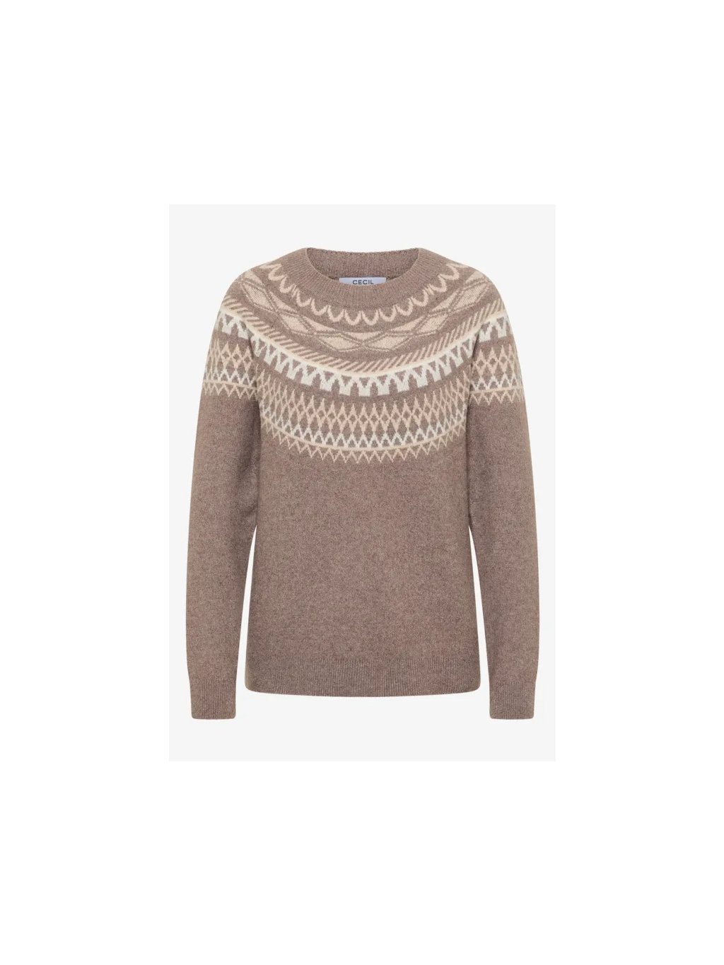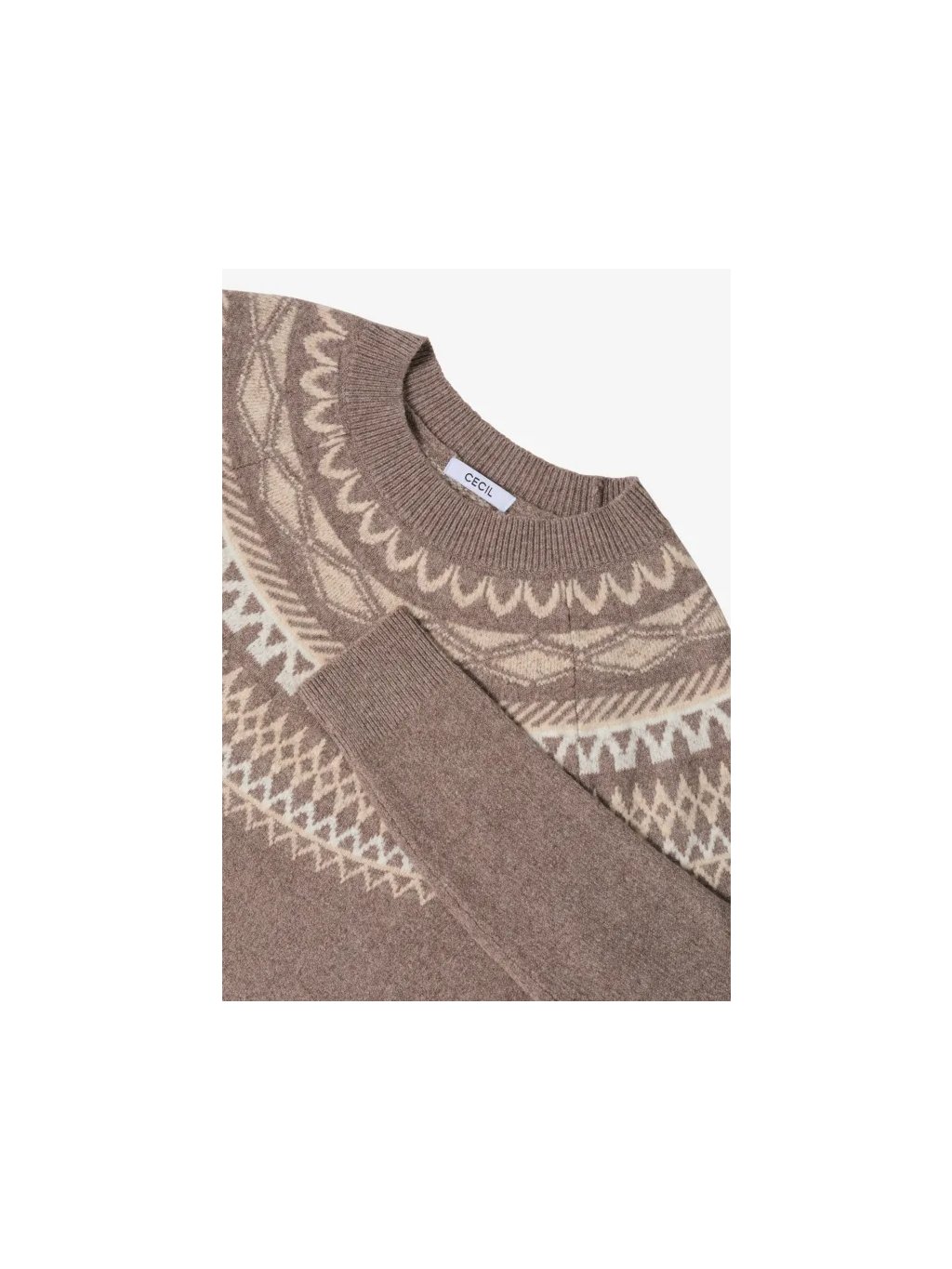 Tento dámský žakárový svetr CECIL s norským vzorem dodá vašemu vzhledu zimní útulnost. Měkký úplet a klasický kulatý výstřih zajišťují pohodlné nošení. Stylový kousek do chladných dnů.