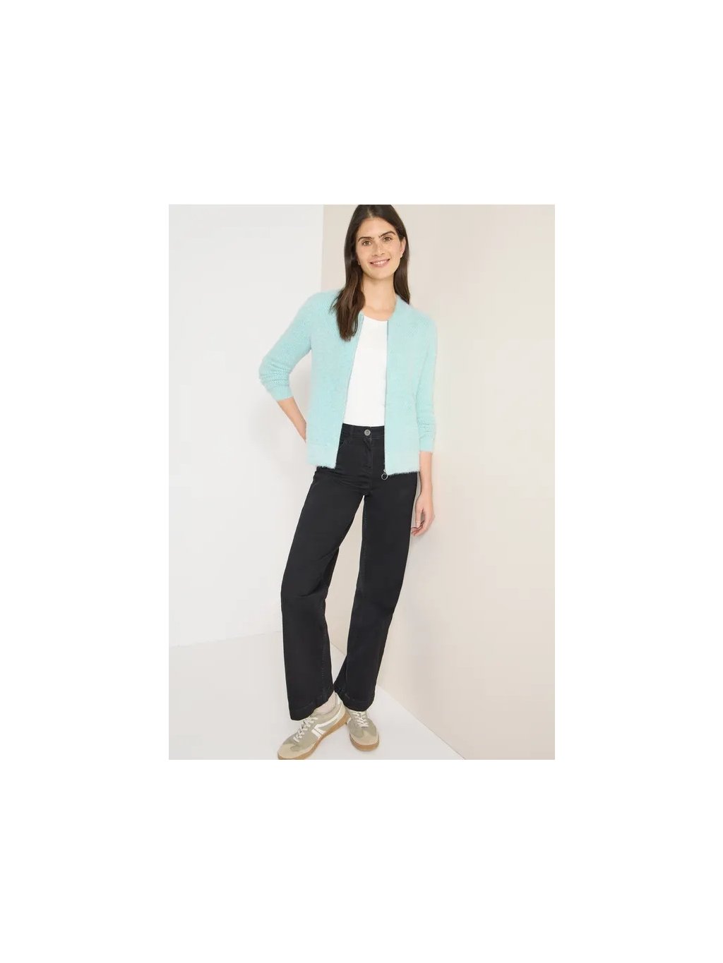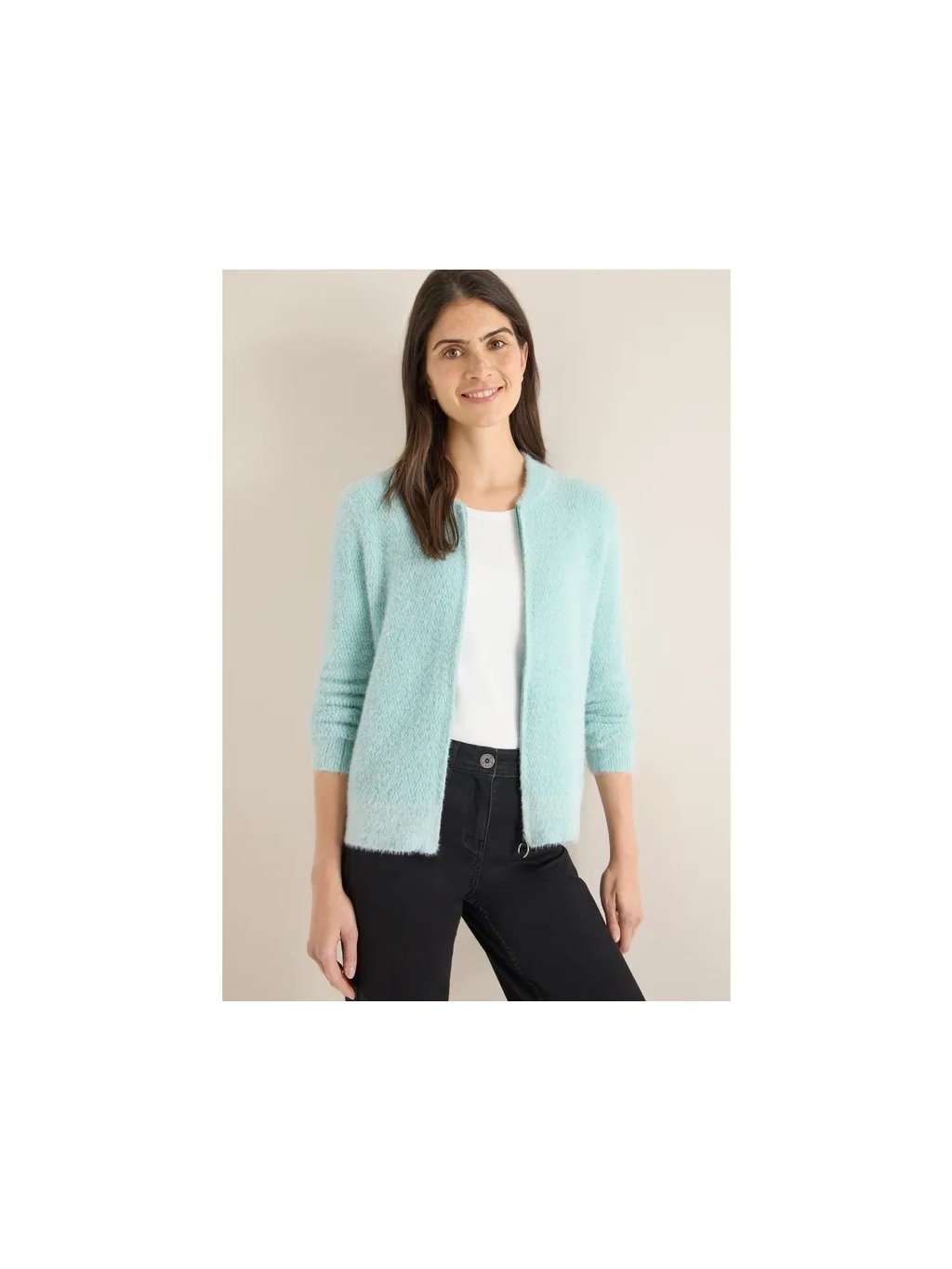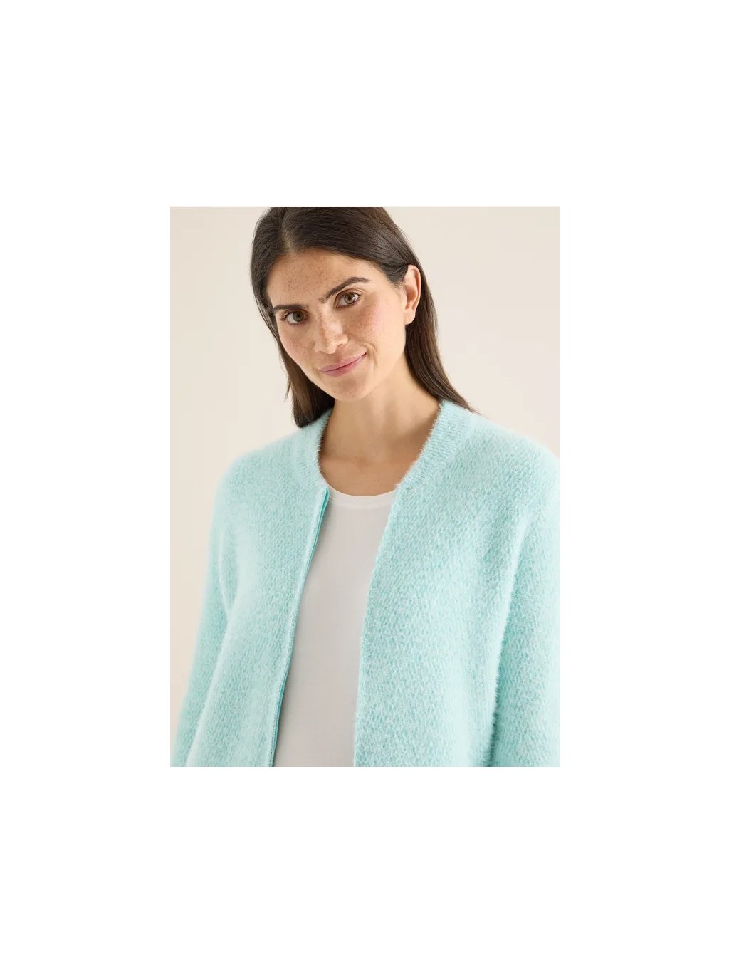 Dámský žakárový kardigan CECIL vnese do vašeho šatníku svěží vítr díky zapínání na zip a střihu bluzón. Pohodlný měkký úplet se snoubí se sportovním stylem s kulatým výstřihem a dlouhými rukávy. Ideální pro stylový outfit, ve kterém se budete cítit dobře.