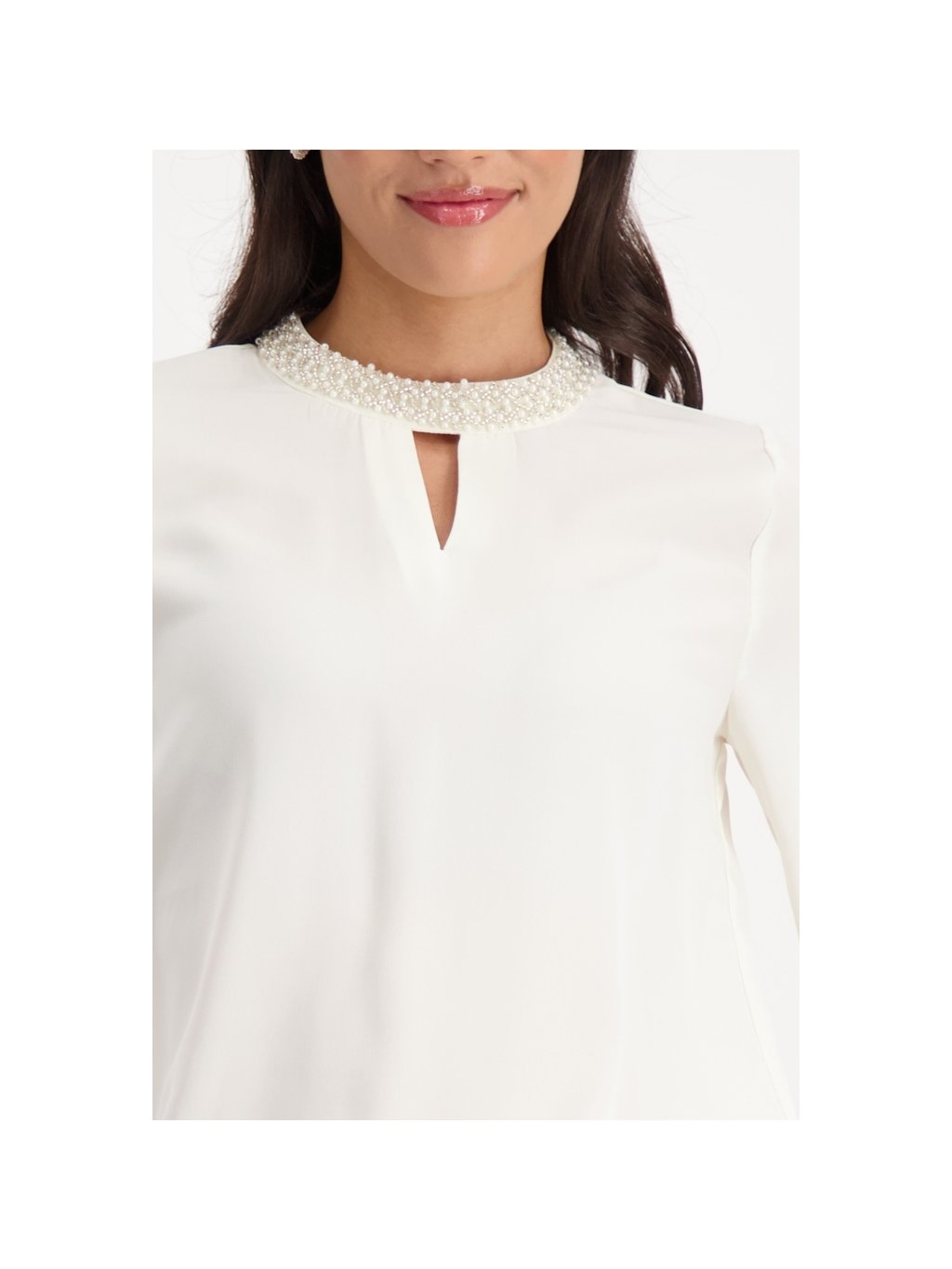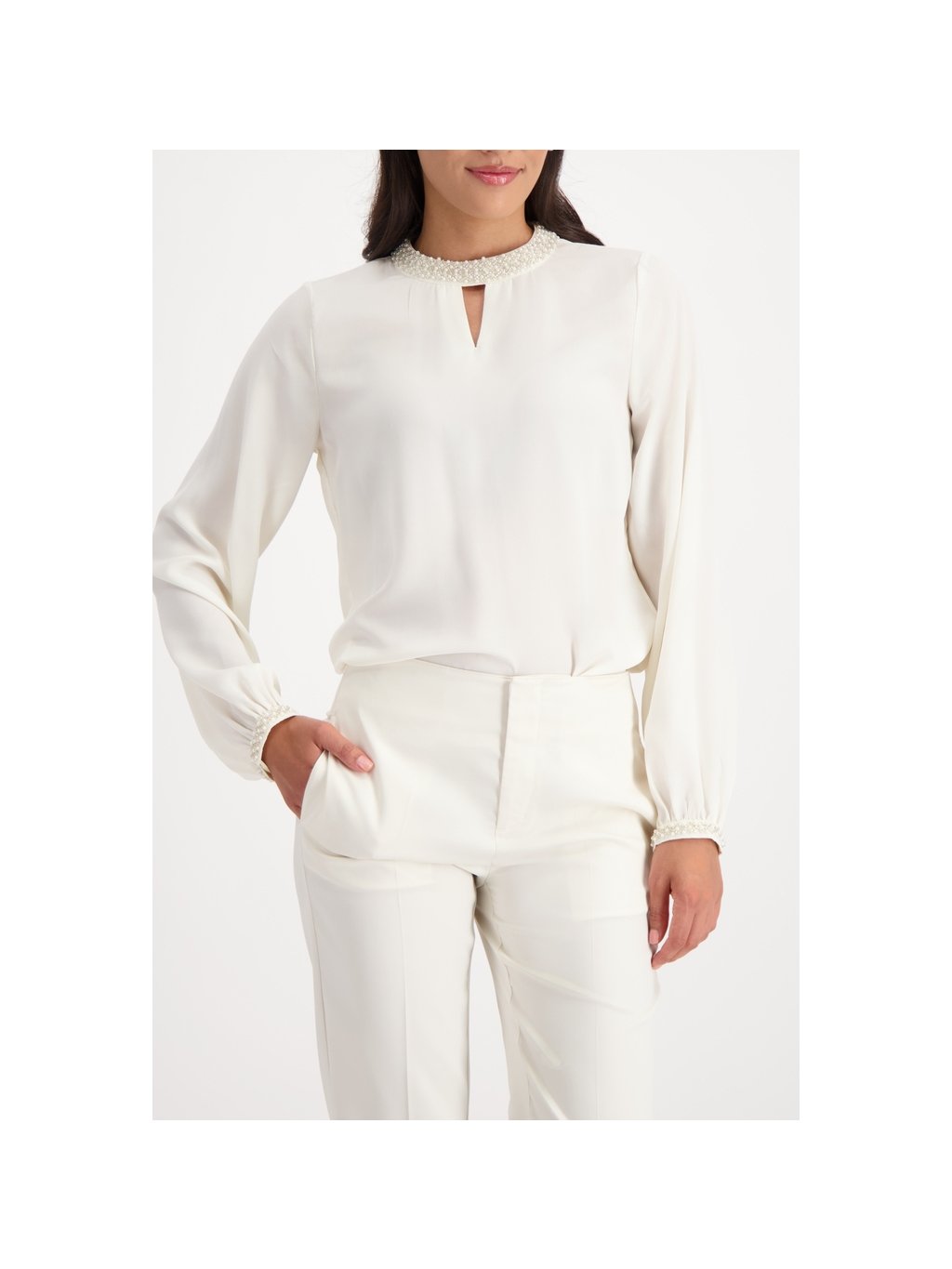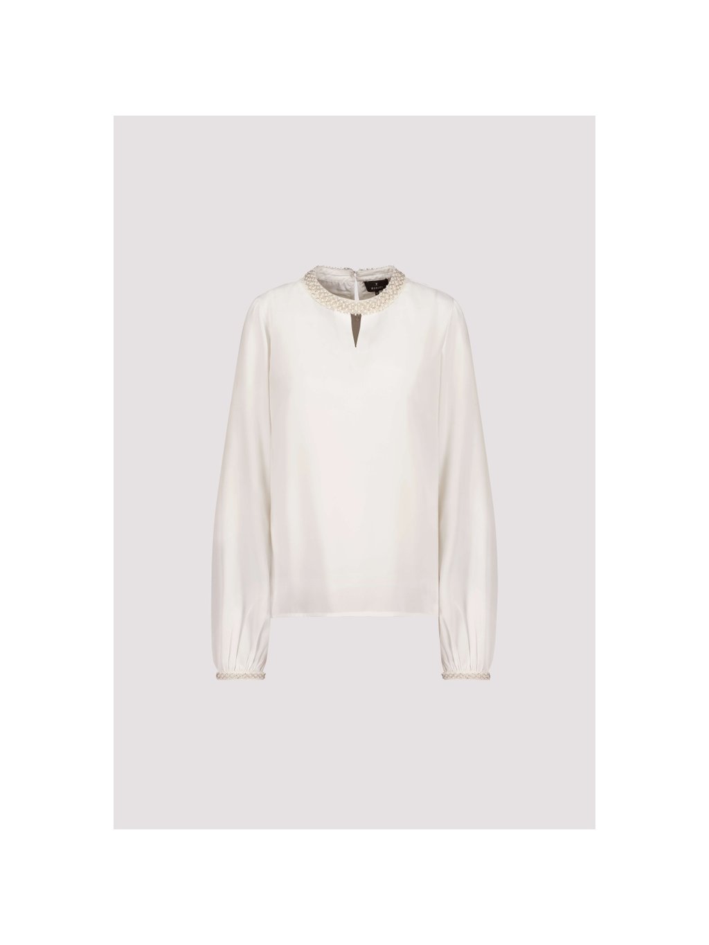 Stylová halenka z žoržetu z lehce průhledné látky se zdobenými detaily a volánky na manžetách – nepostradatelný doplněk moderního vzhledu.